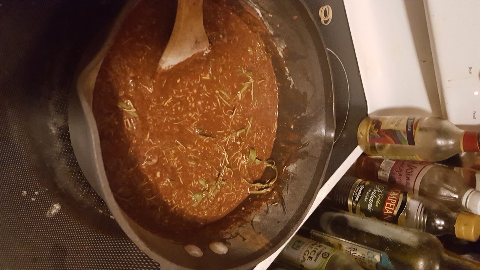 I simmered it, removing scum every 2-3 minutes. Once it had simmered for the allotted time, I removed the rosemary and tarragon stems and leaves (as much as possible) and poured the mixture into glass containers and let them cool completely.